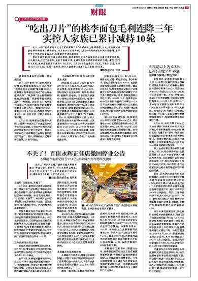 近日,一则“桃李面包中吃出2厘米带锈刀片”的词条冲上微博热搜,对此,新快报记者致电事件的涉事方桃李面包,对方表示以公告为准,2月20日桃李面包午间公告澄清,生产环节不可能存在金属刀片,已报警并申请立案调查。 资本市场方面,新快报记者注意到,桃李面包的主导产品面包是企业最主要营收来源,占比超九成,2022年全年,股价下跌超40%,业绩快报显示营收净利润双下滑。截至2022年9月底,桃李面包股东户数为4.86万户。2月20日收盘报16.08元,下跌0.25%,总市值214.36亿元。值得一提的是,昨日大盘强势上涨超2%,上涨超3800家。 ■新快报记者 涂波 桃李面包食品安全问题一直备受关注 除了“刀片事件”外,新快报记者注意到,查阅黑猫投诉平台及搜索“桃李面包安全问题”等关键词,公开信息显示桃李面包还存在“吃出再生塑料扎带”、“桃李牌”吉士馅铜锣烧保质期内发霉、“同款桃李面包保质期不一”等问题。2022年8月,桃李面包因混入飞虫被天津市市场监督管理委员会罚5万元。黑猫投诉显示,截至2022年2月20日,桃李面包投诉量达251宗,包括变质、过期及有活虫等问题。 2月20日,桃李面包在澄清中声明,公司第一时间对工厂内部各生产环节进行安全排查,公司生产过程中不存在使用该类刀片的工艺环节。并且公司所有的产品都需经过金属检测机检测方可出厂。因此,排除在生产过程中存在金属刀片的可能性。 毛利率持续下滑 面包为最主要营收来源 天眼查App显示,桃李面包于2015年12月A股上市,其法定代表人为吴学亮,注册资本约9.5亿人民币,实际控制人包括吴学群、吴学亮、吴志刚、盛雅莉、吴学东。目前实控人家族合计控制公司超55%的股份。值得一提的是,从2019年以来家族成员就在轮番减持、质押股份等行为,至今约有10轮减持,减持累计套现超40亿元。对于家族成员集体减持的原因,公司基本都用“出于个人需求”作为解释。2月11日,桃李面包再次公告,公司大股东吴志刚本次质押4750万股,占其直接持股77.74%;该公司合计被质押股份2.584亿股,占公司总股本的19.38%。从十大流通股东来看,除香港中央结算有限公司和员工持股计划外,其余八大股东均为自然人,机构持仓度较低。 财报显示,截至2022年9月30日,桃李面包主要产品包括面包、月饼和粽子,面包的营收占比为96.47%,也就是说面包是企业最主要营收来源。截至2022年6月,桃李面包在全国22个区域建立了生产基地,在全国市场建立了31万多个零售终端。目前,参股或控股公司达37家。2022年12月,桃李面包以4580万元的价格竞得广东佛山一个6万平方米的地块,将投资20亿元建设华南烘焙食品中心项目,打造华南区域总部,预计面包总产能年产量将达到6.8万吨。 据2022年业绩快报,桃李面包2022年预计实现营收66.86亿元,同比增长5.54%;实现归母净利润6.48亿,同比下降15.11%。2019年-2021年,公司实现毛利率连续三年持续下降。对于业绩表现不佳,桃李面包解释称,是受各种成本上涨、疫情以及短保面包市场竞争加剧等多重因素。