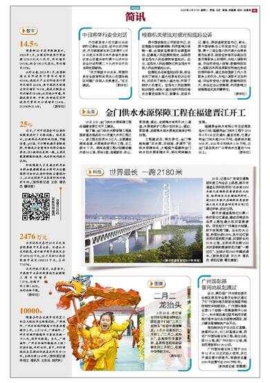 20日上午,金门供水水源保障工程在福建省晋江市开工建设。 据了解,金门供水水源保障工程是国家重点推进的150项重大水利工程之一。该工程总投资31.3亿元,主要建设湖库连通、水源地保护两大工