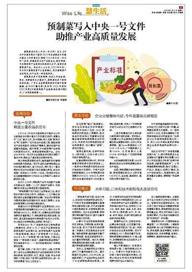 预制菜首次写入中央一号文件!近日,《中共中央国务院关于做好2023年全面推进乡村振兴重点工作的意见》(简称“2023年中央一号文件”)发布,明确培育乡村产业新业态,提升净菜、中央厨房等产业标准化