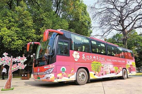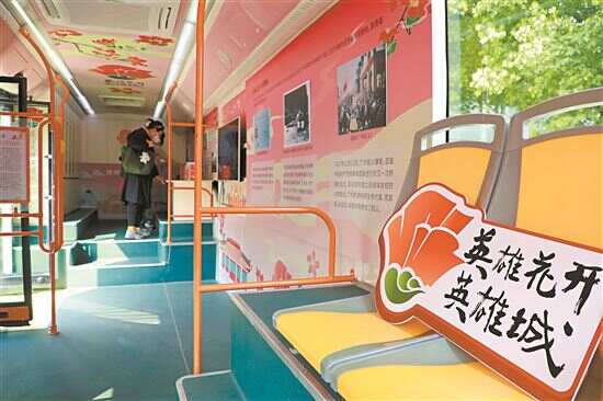 ■“英雄花开英雄城”主题红色公交。 |