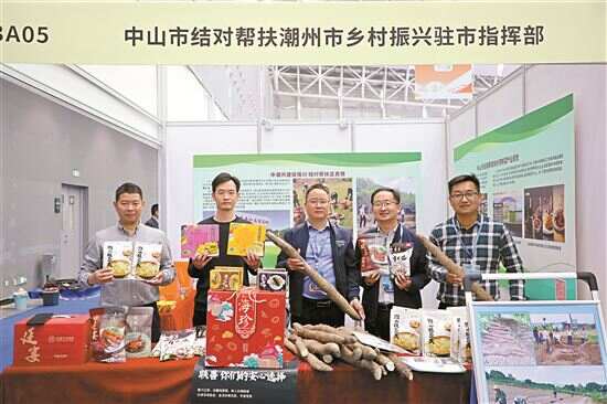 ■中山市结对帮扶潮州市乡村振兴驻市指挥部和三个驻镇工作队人员来到现场为帮扶产品代言。 |