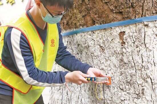 寻找城市“绿光”,共同守护137棵古树 古樟树、细叶榕、大叶桉……沙面岛上有1000多棵不同品种的树木,其中在册的古树137棵,是广州市古树最为集中的城中区域。3月13日下午,寻找城市“绿光”——拾翠洲古树探究活动在沙面岛举行,活动组织成立沙面古树“观察员”团队,发动岛上企业、学生、住户、游客加入古树观察行列,共同保护古树名木、保护绿色资源,形成人人都是古树“观察员”的氛围。 ■采写:新快报记者 谢源源 实习生 黎辛桐 通讯员 荔宣 ■摄影:新快报记者 毕志毅 专业!园林专家为古树“体检” 沙面岛,古称拾翠洲。为了让大家更系统地了解古树,沙面街道发起了古树“观察员”征集令,发动岛上企业、学生、住户、游客加入古树观察行列。活动以“门前古树观察员”为主线,挑选岛上6株树龄超过150年的古树开展观察记录活动,树种涵盖了樟树、榕树、桉树以及假柿木姜子。 活动在沙面大街54号门前的一株樟树开始,这株树龄达到338年的古树成为本次活动的首站,活动邀请到来自广州市林业和园林科学研究院的植物保护研究所所长毕可可和高级工程师叶少萍、李铤加入,让观察活动更具“专业性”。 “对古树进行观察时,可以观察树冠、树皮、树干和树根的状况。观察树冠可以了解古树的生长情况和枝条状况;观察枝叶可以了解养分状态和叶面病害状况;观察树皮可以发现有无病害、虫害和机械损伤等;观察树干可以了解内部的损伤状况;观察树根可以了解树木的稳定性和生长情况。”毕可可介绍道。 为了更好地保护古树,广州市林业和园林科学研究院的“树木医生”还带来了高科技为古树“体检”。活动现场,他们使用了“picus弹性波树木断层画像诊断装置”和“TRU树木雷达”等仪器设备,为古树“照B超”“拍CT”,确保对古树的评估更加科学准确。“‘picus弹性波树木断层画像诊断装置’可以通过发射声波来检测树木内部的结构和损伤情况;‘TRU树木雷达’可以通过电磁波来检测树木内部的构造和根系生长情况。这些仪器设备可以为古树进行更加精准的检测和诊断。”毕可可如是告诉新快报记者。 有趣!小学生当上古树“观察员” 跟随着“树木医生”的脚步,当天,古树“观察员”团队来到了沙面南街52号“沙面宾馆”对面的一棵樟树旁,这棵树龄为255年的樟树高约18米,树冠直径达到了25米,枝叶茂密,并且拥有独特的香味。 “樟树,树形高大,树干通直优美,树冠开展如伞,为南方无数道路投下林荫、遮蔽尘土、缓解雨水冲刷。在沙面137株古树名木中,带有阵阵清香的古樟树共有68棵,当你闻到了这股香味,就感觉来到沙面。”李铤介绍说。 参加活动的沙面小学学生邱瑾晖说:“今天学习了观察古树健康的科技方法,知道了大树故事,以后我能更好地向大家介绍岛上的古树。” 一起来打卡 本次寻找城市“绿光”——拾翠洲古树探究活动,还组织了“古树护照”盖章打卡活动。打卡活动将从3月14日开始,持续一周,热爱古树的市民朋友可以在此期间来到沙面进行拍照打卡。