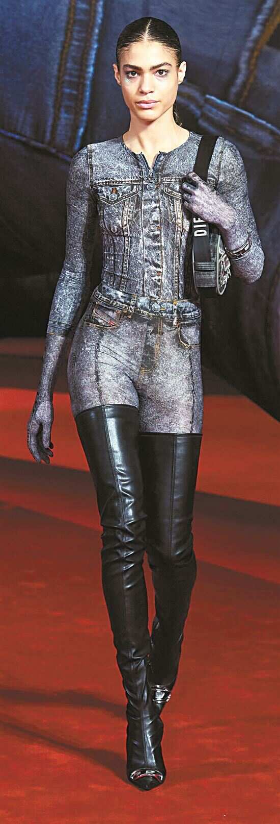 ■全身牛仔的造型装扮相对易显单调沉闷,适当露肤,选择高跟或尖头的鞋型,搭简单而有延伸感的纯色内搭,能让造型更有质感。 |