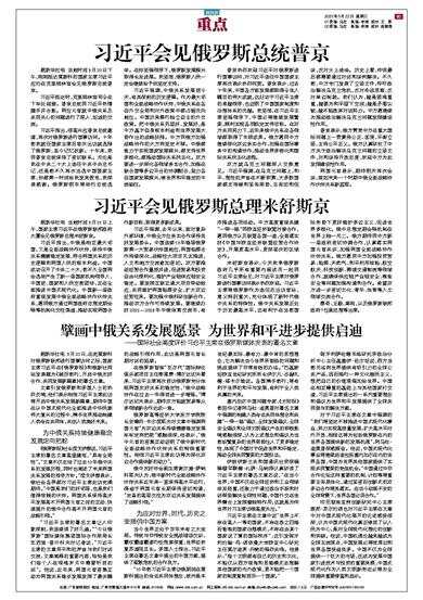 ——国际社会高度评价习近平主席在俄罗斯媒体发表的署名文章 据新华社电 3月20日,在赴莫斯科对俄罗斯联邦进行国事访问之际,国家主席习近平在《俄罗斯报》和俄新社网站发表题为《踔厉前行,开启中