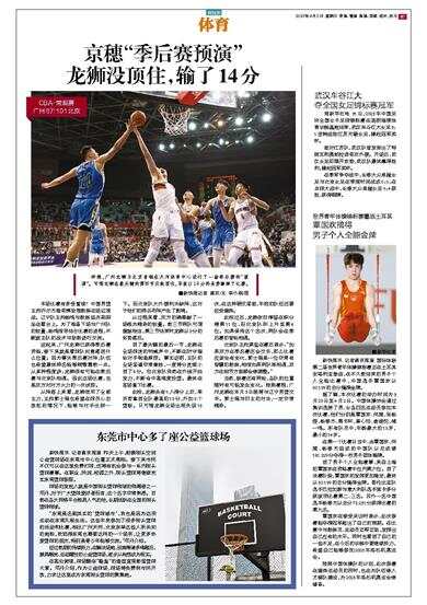 京穗“季后赛预演” 龙狮没顶住,输了14分