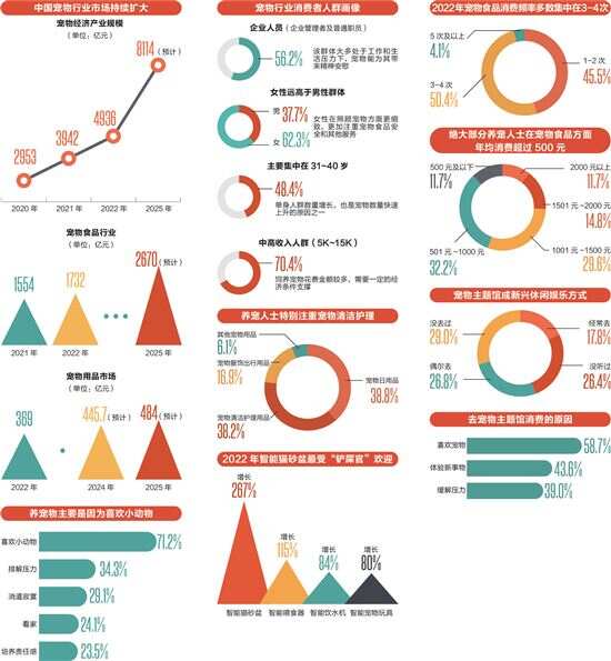 03 去宠物咖啡厅里待上半天 正成为年轻人的新时尚 宠物经济已经衍生出了不少新的业态,比如在很多商业街都会出现的宠物咖啡厅以及一种全新的养宠方式——“云养宠”。 去宠物咖啡厅里待上半天,从小动物身上获得心理上的安慰,正成为不少年轻人的新时尚。根据艾媒咨询《2021年上半年中国宠物经济产业发展现状与市场调研分析报告》数据显示,“云养宠”和各种宠物体验馆的出现,吸引了一批潜在客户开始饲养宠物。 基本上,宠物主题体验馆的商业模式分为两种,第一种以网红宠物为卖点,满足目前部分人由于工作或生活原因无法饲养宠物但渴望与宠物游玩的需求,以入场费为主要盈利手段。第二种以宠物领养为主要目的,通过宠物主题馆收养流浪猫、狗等,同时寻找适合领养宠物的顾客,以领养代替贩卖,主要盈利手段是咖啡或其他餐食。值得一提的是,在宠物主题馆里,单次消费金额在20-60元的占比为54.6%,消费超过100元的消费者仅占5.0%。 “云养宠”同时为那些想养宠物的人士提供了另一个新选项。“云养宠”有多种形式,最简单的是在手机上围观“别人家的猫狗”——年轻人可以通过关注、互动、甚至打赏投喂,获得陪伴、娱乐和治愈的体验。“云养宠”的另一种形式是通过机构或者在线平台认领一只宠物,定期提供经费,由对方代养,定期通过照片和视频了解宠物状态,平时有空也可以自己去探视,与宠物互动。 为何“云养宠”一下子火了起来?这得益于社交网络的发展,进而使得网红宠物的经济效益得到了充分的体现。业内人士指出,不少宠物主人通过在社交媒体上发布自己宠物的生活点滴,加上一定的故事包装,能快速累积起一个小规模的粉丝群体。而有了一定的粉丝量后,宠物便有了成为网红的基础,可以接受各个宠物用品品牌的推广,将推广融入进他的视频作品当中,从而产生经济效益。 数据来源 艾媒咨询《2022-2023年中国宠物产业发展及消费者调研研究报告》、《2021-2022年中国宠物食品市场及消费行为监测报告》《2021年中国宠物经济产业研究报告》、《宠物经济行业数据分析: 82.4%消费者会选择购买宠物清洁护理用品》、《中国宠物经济行业数据分析:62.0%消费者的宠物用品购买次数不变》、《2021年上半年中国宠物经济产业发展现状与市场调研分析报告》、头豹研究所《2022年中国宠物智能用品行业概览》、天猫、京东、唯品会。