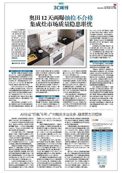 奥田12天两曝抽检不合格 集成灶市场质量隐患堪忧