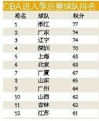 CBA常规赛收官,广州队排名第9 新快报讯 记者高京报道 昨晚,2022-2023赛季CBA常规赛结束了最后一轮的争夺,经过42轮赛会制和主客场制的较量,晋级季后赛的12支球队已全部产生。广东、深圳、广州这三支来自南粤的球队均完成晋级,这是三队连续三年同时跻身季后赛。 经过最后一轮的厮杀,进入季后赛各队的座次终于排定。季后赛首轮比赛,广州龙狮队将对阵山东队。 新外援加盟 广东锁定常规赛亚军 广东队在主场迎战老对手新疆男篮,在已无缘季后赛的情况下,新疆队并没有放弃比赛,而是真刀真枪与广东队来了一场较量。最终,广东队以108:95击败对手,锁定了常规赛亚军。 值得一提的是,刚刚与球队签约的沙巴兹·默罕默德本场登场亮相。在不到7分钟的登场时间里,他贡献了9分3个篮板。他的加入,极大丰富了广东队的锋线,同时也能缓解另外两名外援布鲁克斯和汉密尔顿身上的压力。 不过,广东队此役也收获了一个不好的消息,张皓嘉因腿部受伤,不得不中途退出比赛。随后他前往医院接受检查,希望这一伤势不要影响后面的比赛。 “时间过得飞快,常规赛已结束了。我们之前的目标就是先晋级季后赛,没想到我们最后拿到第二名。在全队的努力下,第一个目标(季后赛)已完成。接下来就是要有平常心,去准备下一个对手。”广东队主帅杜锋表示。 另外,已提前锁定常规赛第四名的深圳队此役北上挑战天津队。为了给季后赛保留实力,烈豹本场只有10人出战,并给年轻球员大量出场时间。结果,球队在客场以98:104不敌对手。 季后赛首轮 龙狮将对阵山东 上轮击败辽宁队之后,广州龙狮已完全将状态展现出来。本场远征长春,球队以104:87击败吉林男篮。本场龙狮5人得分上双,崔永熙拿到23分,乔丹·贝尔则拿到13分13个篮板的大号两双。 凭借着本场胜利,广州龙狮最终排在积分榜的第九位。季后赛首轮,球队将与山东队过招。在郭士强执掌球队的第一个赛季,龙狮就是在季后赛首轮被山东队淘汰(当时赛制为一场定胜负)。如今再次面对对手,不知道“老叔”的队伍能否给球迷带来惊喜。 常规赛落下帷幕后,各单项数据已全部产生,江苏外援布莱尼克场均32.7分当选得分王,王哲林则以20.8分成为本土得分王。 按照CBA的赛程,广州队参加的季后赛首轮将于4月9日开打,比赛采用三局两胜制。广东、深圳两支队伍参加的8进4的比赛将于本月17日开战,这一轮同样为三局两胜制。 等四强产生后,半决赛将于25日开战,比赛升级为五局三胜制。而最终的总决赛将在5月8日开始,比赛采用七局四胜制。 季后赛首轮对阵一览 上海(5)VS江苏(12) 北京(6)VS吉林(11) 广厦(7)VS山西(10) 山东(8)VS广州(9)