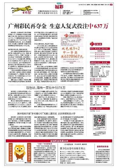 新快报讯 记者陆妍思报道 4月4日,福利彩票双色球游戏进行第23037期开奖。当期全国中出16注597万多元头奖,其中海南一张机选票独中10注,单票总奖金5978万多元。 第23037期双
