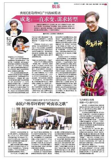 亮相《龙马精神》广州首映现场 电影《龙马精神》已于7日全国上映,当天,导演杨子与成龙、刘浩存、于荣光等一众主创亮相广州站首映。现场,成龙感叹,其实这十几年来自己一直在求变,谋求转型,“以前