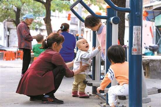 ■小广场里的滑滑梯和体育设施,“承包”了杜阮村小朋友的全天候欢乐。 |