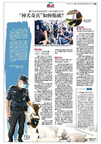 警犬化身“移动安检机”,守护羊城地下出行 您在广州地铁里见过警犬吗?在广州地铁的广州南站、汉溪长隆站等人流量较大的站点,一收到指令,又萌又酷的“小家伙”就如离弦的箭般迅速出动,对乘客携带的