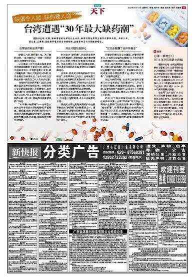 缺蛋令人烦,缺药要人命 据新华社电 近期,除缺蛋困扰台湾民众生活外,缺药问题也常常占据岛内媒体头版。年初以来,抗生素、止痛药、退烧药等常用药品持续短缺,直接影响岛内百姓健康福祉。 台