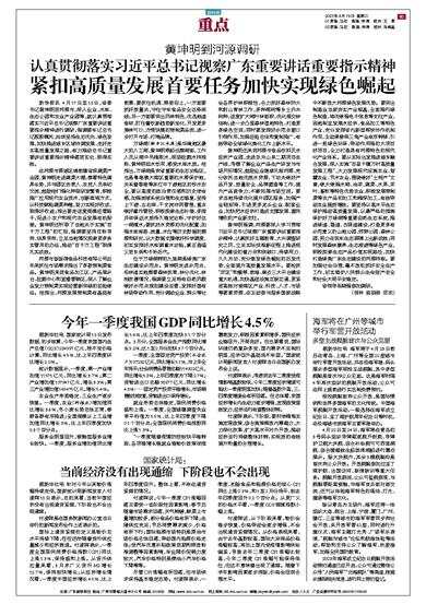 今年一季度我国GDP同比增长4.5%