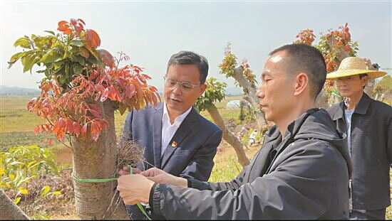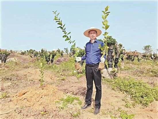 ■驻汕尾陆丰市博美镇工作队队长刘守素为产业振兴,种下希望的树苗。 |