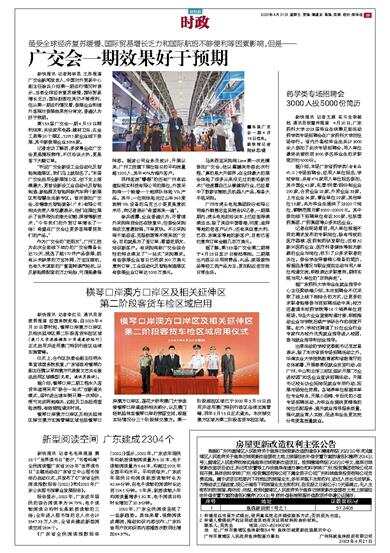 新快报讯 记者李红云 通讯员宫胜男报道 经国务院批准,自2023年4月20日零时起,横琴口岸澳方口岸区及相关延伸区第二阶段客货车检区域(澳门大学连接横琴口岸通道桥除外)正式启用并适用澳门特别行政