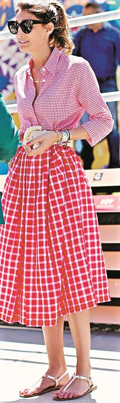 旅行中美好的除了风景,还有作为时髦精的你那轻舞飞扬的裙摆,伞裙回归的裙装潮流趋势,让挺括有型的伞裙帮你强调身材的优美曲线,拍照上镜度“爆表”。 伞裙不算很挑人,对大部分身材的时髦精们都比较友好。上身瘦而腰臀差大的“梨型身材”穿着伞裙更是“藏肉”效果一流。它也同样适合肩宽胯窄的“倒三角”身材,“伪造”出一定的下半身量感。当然,量感大,难免让人担心会压个子,技巧就在于版型、长度及上衣的搭配,把握住这几个要素,伞裙轻易成为你修饰身材比例、显高显瘦、上镜吸睛的制胜单品。 ■新快报记者 梁彧/文(资料图片) Focus A “伞”度要适中,浪漫它自来 上窄下宽的版型如撑开的伞一般的小裙子,高腰比例配打皱设计,让整条裙子瞬间带了浪漫与生气。 不过,不过度追求裙摆撑开的幅度,尤其是腰臀部,是选择伞裙的时髦精在造型搭配时需要注意的要点之一,过蓬松容易拉低重心,显得比较压个子,也不那么“日常”,所以优选不过蓬的、面料稍微轻盈的更容易驾驭。 此外还要注意伞裙腰线不要太低,高腰设计更能修饰身材比例。 Focus B 膝下10厘米,经典又藏肉 选择度假造型用的伞裙时,裙摆的长度很重要,比较适合的是膝下10到15厘米的长度,既经典又容易藏肉,即便是通勤也没有问题。 Focus C 短款美上衣,搭出好身材 搭伞裙,上身选短款或紧身的更能突出强调身材曲线美,还可以尝试混搭卫衣、Polo衫、T恤、背心等休闲服饰,选择较为贴身或长度刚好在臀部以上的,如果带泡泡袖、飘带或荷叶边元素设计的休闲服饰,与伞裙的配搭会显得更协调。 衬衫相对比较中性,正好可以稍微平衡一下伞裙的女人味儿,简洁大方美观,外出旅行衬衫更可用作“一衣多穿”的搭配选择,要注意尽量凸显腰线。