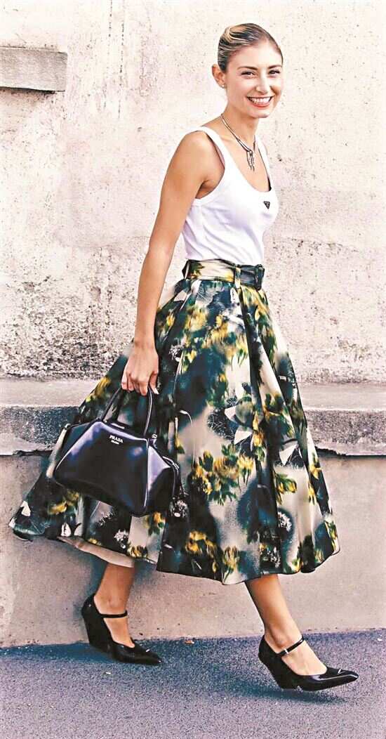 ■开春大热的芭蕾舞鞋与近年一直潮流在线的玛丽珍鞋,都适合搭伞裙,进一步放大伞裙优雅复古的特质。 |