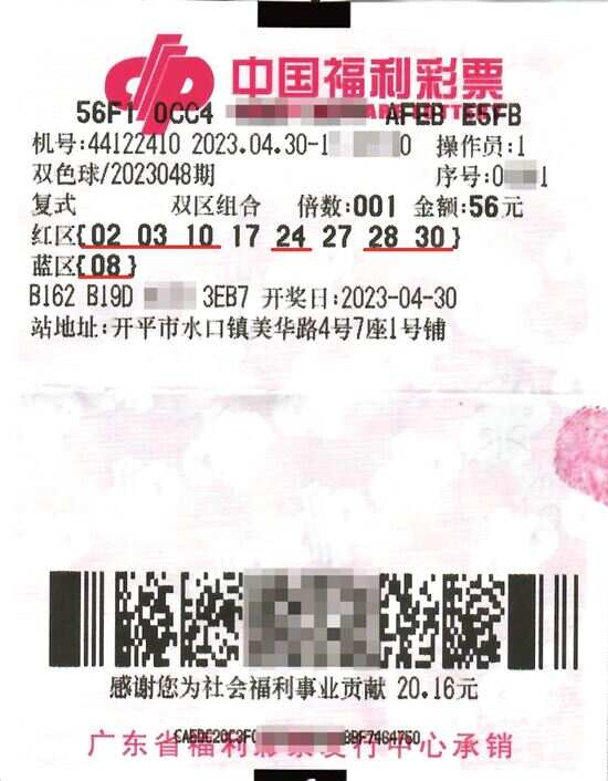 新快报讯 记者陆妍思 通讯员梁一鸣报道 福利彩票双色球第23048期开奖中,江门开平市水口镇美华路4号7座1号铺福彩的44122410投注站喜中1注588万多元头奖。近日,三位彩民来到江门市福利彩票发行中心办理兑奖手续。 由群成员牵头发起合买方案 经询问,他们都是双色球第23048期一等奖的中奖者。经验票,中奖彩票为一张购彩金额56元“8+1”自选复式票,除中得一等奖1注外,还中出三等奖12注、四等奖15注,总奖金5923125元。兑奖后,将为国家贡献税收117.68万元。 据了解,三人是领奖代表,来体验一下大奖兑奖流程,楼下还有10位同行的合买团成员,还有些成员有事没有前来。合买团存续已有好几年时间。大家兴趣相同,成员基本固定。他们坚持“理性购彩 量力而行”,为公益为梦想一起造福,福彩不同游戏玩法搭配的合买方案他们都支持。 每次合买,轮流由群成员牵头发起合买方案,拟出好几组号码供大家参考,并由专人做好合买人名单、各自股数和收款记录。说起来他们运气也不差,坚持合买一路以来的购彩资金和中奖奖金基本持平,合买细水长流。前段时间开平市赤水镇中出双色球890万元大奖,“这个大奖离咱们那么近,仿佛看到了实现梦想的曙光,大家都信心满满!”合买代表笑说。 先集体刮奖庆祝再瓜分奖金 第23047期开奖后,合买的彩票没有中奖。大家又商议出新一期的号码和合买方案,选择了“8+1”(56元)、“8+2”(112元)、“9+1”(168元)共3张复式投注票、20股的方案。当晚开奖,合买的“8+1”彩票中大奖消息炸开,参与当期合买者欣喜若狂,没参与者羡慕不已。“五一”假期过后,他们第一时间组队前来办理兑奖,共享丰硕的成果。 合买团成员表示,他们多人少买,募寓于乐,以娱乐心态快乐购彩,品味彩票游戏带来的乐趣,同时助力公益慈善事业为社会造福。选择合买复式彩票,汇聚力量,中奖机会相对会大一些,而且个人购彩金额相对少一些,经济上无压力。奖金到手后,先拿出部分奖金购买一些刮刮乐即开票集体刮奖以示庆祝,再瓜分奖金,为生活添彩。同时,仍然继续组织合买,理性购彩。 ■相关 出奖旺站获颁中奖证书 近日,江门市福利彩票发行中心到开平市44122410投注站举行庆祝中大奖宣传活动,为该站颁发中奖证书和宣传费奖励。 连同4月9日开平市赤水镇福彩44122408投注站中出双色球第23039期一等奖890万元,一个月内江门两中双色球大奖。同在第23048期588万头奖中出当天,江门市福利彩票市场更迎来双喜临门,新会区44122147投注站开通销售当晚,一彩民幸运刮中“喜相逢30元”二等奖20万元。