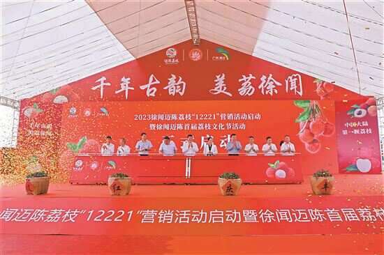 湛江徐闻迈陈启动首届荔枝文化节,搭平台、广交友、富果农 “日啖荔枝三百颗”,主会场红色大门上写着这句古诗,让人垂涎欲滴。5月13日,湛江市徐闻县迈陈镇北街村荔枝文化广场锣鼓喧天,人山人海,旁边的村道上,运货车、私家车、大巴车络绎不绝。以“千年古韵·美荔徐闻”为主题的“2023徐闻迈陈荔枝‘12221’营销活动启动暨徐闻迈陈首届荔枝文化节活动”(以下简称迈陈荔枝文化节)在这里拉开了帷幕,同时秉承荔枝先熟优势,这次活动也拉开了广东省荔枝采摘接力赛的“第一棒”。 ■采写:新快报记者 曾贵真 通讯员 林耀 郑派虹 薛刚 ■摄影:新快报记者 林里 以点带面推动 特色优势农业产业高质量发展 徐闻是全省荔枝最早熟产区,徐闻荔枝上市意味着广东荔枝季开始。作为广东荔枝营销“第一棒”,迈陈镇北街村、龙潭村万亩果园枝头的荔枝已陆续实现“开门红”。 今年,徐闻县政府、迈陈镇政府和广州对口帮扶单位集聚资源优势,围绕荔枝产业、市场、科技、文化、旅游“五张牌”做文章,用好“12221”密码,进一步挖掘徐闻迈陈镇“北街荔枝”市场价值,举办了迈陈荔枝文化节。 广州市派驻湛江市驻镇帮镇扶村指挥部总指挥顾伟星对活动进行了充分肯定,他表示,此次广州市对口帮扶迈陈镇举办荔枝节活动,充分挖掘迈陈镇“一镇一业”“一村一品”荔枝特色产业、滨海生态和千年古盐田的资源优势,以点带面推动特色优势农业产业高质量发展,是湛江乡村振兴的一次生动实践。 迈陈镇党委书记黎文光表示,2020年以迈陈镇荔枝为代表的徐闻荔枝已被列入全国名特优新农产品名录,迈陈抓住荔枝这一优势产业,推动荔枝产业走规模化、品牌化、集约化道路,形成了集产业、文化、旅游为一体的开发模式。迈陈已搭建起招商引资整体开放平台,将通过举办荔枝营销活动,以“荔”为媒,广交朋友,让果园丰收,果农“钱袋子”鼓起。 广州市南沙区对口支援办代表、南沙区东涌镇人大副主席杨焕武表示,这次活动为迈陈镇乡村振兴打开了“一镇一业”“一村一品”精品意识的“小切口”,进一步擦亮了“北街荔枝”这块徐闻荔枝金字招牌。对口帮扶单位将充分发挥大湾区创新优势,务实加快推进南沙、徐闻深度合作,实现优势互补、共同发展。 首颗“树王”荔枝拍出8万元 荔枝卖出好价钱 活动现场还举办了荔枝产业乡村振兴帮扶车间挂牌仪式、产销对接签约仪式、现场订货发车仪式、荔枝摄影大赛、现场直播带货等。在拍卖环节,东涌镇经济开发总公司以8万元拍得2023年第一颗“树王”荔枝。 开幕当天,现场设置了多个美食摊位,除新鲜荔枝外,还推出了腌粉、甜玉米、柠檬汁、椰汁、生蚝等具有迈陈特色的美食,引来游客不断驻足、购买。 新快报记者走访了解到,迈陈镇的荔枝以白糖罂、无核荔枝、妃子笑等品种为主,北街村的荔枝园里,部分白糖罂荔枝已熟红于枝头,可以直接采摘。北街村一位种了约60亩荔枝的果农告诉新快报记者,因为早熟的优势,这里的荔枝在开花时就已经有人预订了,现在是集中上市期,每天有几十辆货车进出运送荔枝。今年因为雨季等原因,产量有点偏低,但是价钱比往年好。“相信一亩能赚一万多元。”他开心地说。 据了解,活动于5月13日上午开幕后连续举办3天,游客还可到荔枝园现摘现买或者当场邮寄鲜果。