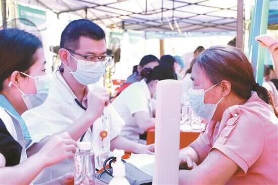 驻湛江市麻章区湖光镇工作队: 5月18日一大早,湖光镇卫生院的大院内比平日更热闹,七个大棚排开,专家们已经就位,等候看诊的乡亲几乎满座。这是驻湛江市麻章区湖光镇工作队举办的“党建引领 广湛同心 携手共创 健康湖光”公益义诊活动,由组团帮扶单位广州医科大学、广州市卫生健康委和湖光镇卫生院承办,来自广州和湛江的14名专家教授为当地乡亲提供“家门口”的专家服务,3名广州专家还为当地医生带来三堂专业课。 这次义诊立足湖光,辐射麻章,是驻湖光镇工作队打造“健康强镇”的系列活动之一。“医疗关乎群众切身利益,工作队计划每年至少举行两次这样的大型义诊活动,为湖光镇群众的健康服务,为建设‘健康强镇’做出实实在在的贡献。”工作队队长钟洪国说。 ■采写:新快报记者 方轶 ■图片:新快报记者 王飞 送义诊 两小时派了200多个号 专家多,科室广,是这次义诊活动的一大特点。新快报记者了解到,参加这次湖光镇义诊的专家共有14名,其中12名来自广州医科大学附属第五医院、广州医科大学附属附属口腔医院的中医科、妇科、儿科、内科、普外科、口腔科等多个科室,1名来自广州市皮肤病防治所,1名来自湛江市慢性病防治所。他们不仅带来了技术,还带来了仪器设备、宣传册,派发了一批常见药品。 “来,你往前坐一些,腿伸直,脚掌抬起来,放下去,抬起来,放下……”在中医康复科的大棚内,来自广州医科大学附属第五医院康复医学科的邓志坚医生,正在指导韦大妈锻炼腿部肌肉,“她的膝关节伸不直,是髌骨关节活动不好,我刚才做了一个关节放松术,现在已经可以伸直了。”他边说边拿起一条毛巾,“膝关节的问题比较常见,我还会教他们平常怎么锻炼,慢慢缓解。”围在他旁边的除了患者,还有一名湖光镇卫生院的康复科医生,专门跟着他学习。 正在内科大棚里坐等看诊的许大姐告诉新快报记者,她头痛了好几年,每当下雨刮风就会痛,吃药也不见效,听说有广州专家来,她就过来看看,“专家免费来看病,很好的。”她笑着说。 临近中午时,在医院大门口负责发号的医生告诉新快报记者,这次活动很受欢迎,“两个小时就派了200多个号,各个科都不少。” 作讲座 当地医生学习忙 院内义诊火热进行的同时,医院五楼的大会议室内,专家授课连上三堂,从9点持续到11点半。35℃的高温下,靠风扇降温的会议室依然炎热,40多名当地医生一边听课,一边记笔记,神情专注。除了镇卫生院的医生,还有来自各村卫生站的村医,以及湖光农场医院和太平镇卫生院的医生。 新快报记者了解到,为了让培训更有针对性,工作队事先调研,广州医科大学方面再根据情况派出了心血管内科、康复医学科和疼痛科的三名医生分别开展相关专业的讲座。 听完疼痛科专家曾庆伟带来的讲座后,湖光农场医院主任揭欣欣表示“很有收获”,“一些技术和治疗方法可能在大城市很普遍了,但我们接触得很少,通过这次讲座,让我们了解到疼痛治疗方面的一些新方法,这样我们在诊疗时思路更开阔了,也能给到病患更多的建议。” 李守州是毕业仅一年的新医生,他坐在第一排紧挨着专家,笔记也记得很详细,“参加这样的授课对我很有帮助,除了增加医学知识,也让我对病患、对用药等都有了更深的理解,希望这样的活动多一些。” 驻湖光镇工作队由广州交投集团牵头,广州市发展改革委、广州市医疗保障局、广州医科大学和广州市卫生健康委共同组成。工作队充分利用派出单位资源优势,结合当地需求,着力打造“健康强镇”,在组团单位的共同努力下,筹资130多万元在湖光镇卫生院建成全区首家具有核酸检测功能的多功能检测中心以及远程治疗室,此前已为600多名群众施医赠药,培训医护人员100多人次。“我们计划每年开展两次义诊赠药活动,今年还计划帮扶湖光镇卫生院援建口腔科。”钟洪国说。 在开展义诊活动的同时,广州医科大学副校长周麟还带队走访调研了旧县村小学,为三名困难学生送上书包、文具、篮球和羽毛球拍等爱心物资和慰问金。此前,广州医科大学捐赠了130台电脑和4000多册图书,为包括旧县村小学在内的三所学校建立了电教室,解决了教育资源不足的短板。