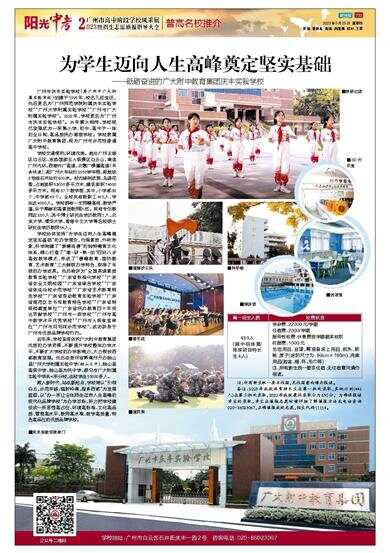 ——砥砺奋进的广大附中教育集团庆丰实验学校 广州市庆丰实验学校(原广州市广大附属实验学校)创建于1998年,校名几经变迁,先后更名为“广州师范学院附属庆丰实验学校”“广州大学附属实验学校”“广州市广大附属实验学校”。2022年,学校更名为“广州市庆丰实验学校”。25年薪火相传,学校现已发展成为一所集小学、初中、高中于一体的全日制、高品质民办寄宿学校。学校隶属广大附中教育集团,现为广州市示范性普通高中学校。 学校交通便利,环境优美。地处广州主城区白云区,东临国家五A级景区白云山,南连广州内环,西接许广高速,北靠广佛肇高速(华南快速),距广州火车站约20分钟车程,距地铁8号线石井站约600米。校内绿树成荫、鸟语花香,占地面积53000多平方米,建筑面积74000多平方米。现有87个教学班,其中,小学部38个,中学部49个。全校共有教职工410人,学生近4000人。学校拥有一支师德高尚、教学严谨、乐于奉献的高素质教师队伍。现有专任教师近280人,其中博士研究生学历教师1人,北京大学、清华大学、香港中文大学等名校硕士研究生学历教师54人。 学校始终坚持“为学生迈向人生高峰奠定坚实基础”的办学理念,内强素质,外树形象,科学构建了“崇德尚善”的独特德育文化体系,精心打造了“激-研-熟-创”四环八步高效教学模式,形成了“善德教育、国防教育、艺术教育”三大鲜明办学特色,取得了丰硕的办学成果。先后被评为“全国英语素质教育实验学校”“广东省标准化学校”“广东省安全文明校园”“广东省绿色学校”“广东省依法治校示范学校”“广东省艺术教育特色学校”“广东省劳动教育实验学校”“广东省规范汉字书写教育特色学校”“广东省特级档案室单位”“广东省民办教育四十年突出贡献学校”“广州市一级学校”“广州市高中教学水平优秀学校”“广州市A级食堂单位”“广州市羽毛球示范学校”,成功跻身于广州市优质品牌学校行列。 近年来,学校紧密依托广大附中教育集团优质的办学资源,不断提升学校整体办学水平,不断扩大学校的办学影响力,大力帮扶西部教育发展。先后在贵州省黔南州开办独山县广州大学附属实验中学(独山三中)、独山县高级中学、独山县为民中学、都匀市广大附属实验中学共4所分校,在校学生10000多人。 跨入新时代,站在新起点,学校将以“引领白云,示范羊城,辐射岭南,服务西部”为发展蓝图,以“办一所让全体师生迈向人生高峰的现代化品牌学校”为办学目标,努力把学校建设成一所思想高占位、环境高标准、文化高品质、管理高水平、教师高水准、教学高质量、特色高品位的优质品牌学校。 学校地址:广州市白云区石井街庆丰一路2号 咨询电话:020-86023067