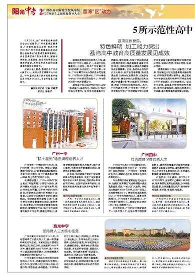5月20日,由广州市招生考试委员会办公室指导,广州市荔湾区教育局、广东新快报社主办的“阳光中考2023年广州中考志愿填报名校巡讲暨公益指导会”在荔湾区教育局举行,来自荔湾区的7所知名高中,围绕中考择校、志愿填报、招生问答等热点话题展开宣讲,为考生和家长提供志愿填报的独家详细指引。 记者从会上获悉,荔湾区为广州中心城区之一,共有六所区属高中七个校区。今年荔湾区属5所示范性高中招生总计划为3428人,与去年招生人数持平。 ■新快报记者 王娟 邓善雯 实习生 李敏然 特色鲜明 加工能力突出 荔湾高中教育高质量发展见成效 荔湾区教育局: 荔湾区教育局相关负责人介绍,荔湾区为广州中心城区之一,共有六所区属高中七个校区。其中广州市真光中学(校本部、汾水校区)、广州市第一中学、广州市第四中学为国家级示范性高中,广州西关外国语学校、广州市南海中学为广州市级示范性高中,广州市西关培英中学为普通高中。 荔湾高中加工能力特别突出,各校“低进高出、高进优出、优进尖出”能力位居全市前列。区内坚持普通高中分类建设、错位发展、为每个学生提供适合教育的原则,推进荔湾普通高中优质、特色、多样化发展,以满足不同潜质学生发展需要。近年,各校结合自身历史文化特点,在开发选修课程、推进选课走班、加强学生发展指导、实施综合素质评价、健全学分认定管理办法和完善办学质量评价等方面进行了积极探索,形成了特色的经验和成果。其中,广州市真光中学、广州市第一中学、广州市第四中学、广州市南海中学分别被评为普通高中新课程新教材实施市级示范区、省级示范校、市级示范校、区级示范校。 荔湾加强对个性化、创新型人才培养,因校制宜为区内各普通高中提供高校、科研院所资源对接平台,建立高校与中学联合发现和培养不同特质的青少年科技创新人才的有效模式。经过多年发展,荔湾高中教育形成特色鲜明、多样化发展格局,展现出深厚的人文底蕴,高中教育高质量发展见成效。 广州一中 “院士星光”特色课程培养人才 广州市第一中学始创于1928年,是广州市第一所公立中学。学校以“勤诚勇毅”为校训,以“教育就是奉献美好给未来”为办学理念,致力于培养具有“第一精神、院士风范”的现代公民。 在课程设置上,广州一中推行“院士星光”特色课程,以责任与使命,崇美与健体为支撑点,以中国与世界、能力与方法为两翼,以科学与探究为突破点,帮助学生正确分析和做好人生规划,以适应社会瞬息万变的环境与挑战。学校拥有特色课程40多门,其中责任与使命侧重理论知识,培养责任、担当意识;科学与探究侧重的是实践探究,掌握探究方法;能力与方法侧重的是技术与应用,提高应用能力;崇美与健体侧重体育艺术修养,提升身心素养;中国与世界侧重国际知识,培养学生的国际视野。 近年来,学校获得了首批广东省国家级示范性普通高中、首批广东省普通高中教学水平优秀学校、国家级体育传统项目学校、全国科技体育传统校、首批教育部教育信息化试点单位等多个荣誉。 ●2023年招生计划 广州一中今年计划招生815人,第一批次招收体育艺术特长生50人,招收科技特长生(即自主招生计划)65人,其中随迁子女第二批计划招生408人,第三批次完成剩余计划招生。 广州四中 红色教育孕育优秀人才 广州四中已有104年的建校历史,作为流淌着黄花岗72烈士之一史坚如烈士血脉的学校——广州四中一直传承红色文化,赓续红色血脉,彰显红色四中教育的初心。 作为荔湾区具有重要地位的完全中学,在建设“教育强区”的战略调整中受到高度重视,促成“一校六区”大发展。学校总占地面积60100平方米,从初一到高三共有教学班106个。学校现有高级教师94人、广州市优秀教师22人、南粤优秀教师2人、广州市百千万名教师8人、广州市骨干教师10人,拥有研究生学历(硕士学位)的教师75人。 办学百年来,广州四中为国家培养了一大批优秀人才,包括中国工程院原副院长、国务院京津冀协同发展专家咨询委员会副组长邬贺铨;著名国学大师、中山大学中文系教授陈永正;世界著名歌唱家,歌剧表演艺术家邓韵…… 红色四中,文化浸润。在“四大文化”的引领下,全面落实立德树人根本任务,教育集团的发展全面提速,办学特色更加显著,办学质量更加优异,教育教学有高度、有深度、有宽度、有温度。 ●2023年招生计划 广州四中今年面向全市招生624人,其中第一批次招收特长生49人,第二批次按名额分配计划招收312人,第三批次按剩余片招生计划招收,其中招收非广州市户籍生93人。 真光中学 坚持育人三大核心任务 广州市真光中学创办于1872年,为祖国培养了大批优秀人才,是一所享誉岭南的百年名校。本部校区位于荔湾区鹤洞山顶、珠江之畔,占地面积97000平方米,建筑面积86200平方米,是广州市中心城区建筑面积最大、办学规模最大的国家级示范性高中之一。 广州市真光中学在办学过程中始终坚持以人为本、求真创新的办学理念。在工作中,坚守育人的三大核心任务:价值引领,思想启迪,品格塑造。引导学生的三大核心能力:阅读能力、思考能力、表达能力。引导学生的三大核心素养:正确的价值观、科学的思维方式、健康的品格。培养学生乐观的生活态度、求实的科学态度、宽容的人生态度。深化真光教