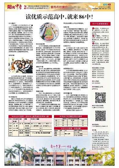 86中真好! 广州市第八十六中学(简称“86中”)矗立于广州市黄埔临港商务区的核心区域,东临海上丝绸之路起点南海神庙,西依广州国际金融城,南望广州大学城和黄埔军校,位置优越,交通便捷。创办