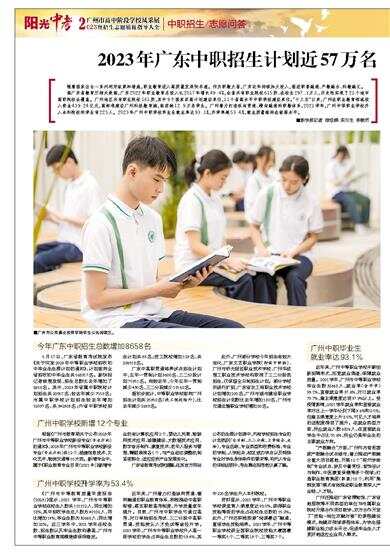 2023年广东中职招生计划近57万名 广州部分学校招生计划变化大