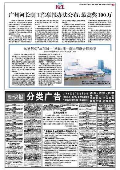 新快报讯 记者许力夫 通讯员穗河轩报道 近日,为打击违法行为,鼓励单位和个人积极参与广州市水环境治理和水资源保护工作,广州市水务局印发《广州市河长制工作有奖举报办法》(以下简称《办法》)。根据《