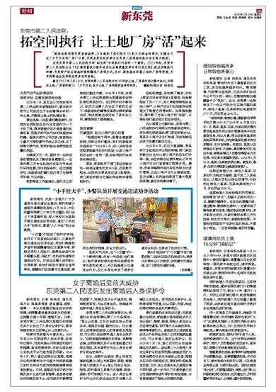 东莞市第二人民法院: “感谢法院同意变更查封场所,不仅避免了我们每月50多万元租金的损失,还腾出了近2万平方米的厂房!”日前,东莞某股份经济联合社负责人在现场向执行法官表示感谢。 这