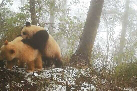 ■红外相机拍摄到的白色大熊猫活动画面。 |