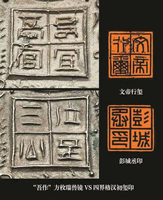 ▲“吾作”方枚瑞兽镜VS四界格汉初玺印 |