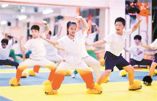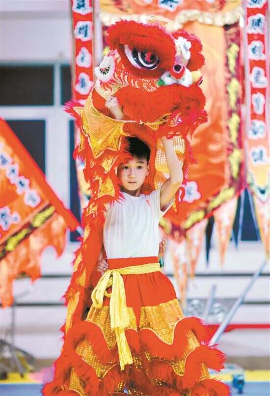 ■在老师的带领下,上马、上肩、坐头……经典的醒狮动作孩子们做起来得心应手。