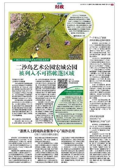 二沙岛艺术公园宏城公园被列入不可搭帐篷区域