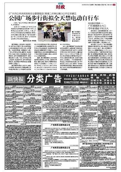 《广州市公共休闲场地安全管理规定(草案二次审议稿)》公开征求意见 公园、广场、步行街全天禁电动自行车,你同意吗? 记者6月7日获悉,《广州市公共休闲场地安全管理规定》拟提请广州市人大