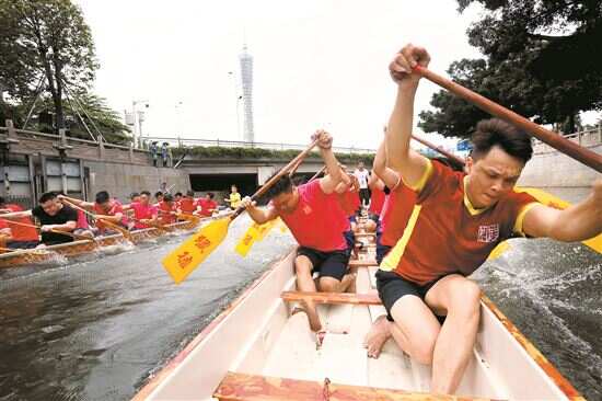一个多月风雨无阻,猎德房东原来是这样备战的 “咚、咚、咚……”“喝!哈!喝!哈!”每天的固定时间,广州市天河区的猎德涌就会交织传来低沉的鼓声和高昂的吆喝声,岸上的人一听就知道:猎德房东们又在练习扒龙舟了。作为市内著名的城中村,猎德的龙舟健儿已经备战一个多月了,整个过程艰苦而独具特色,队员们开玩笑说:“一周六练,不训练的时候就收收租。” 竞争上船 男龙舟手必须是村民 循声望去,房东们坐在训练用的玻璃钢龙舟里,统一穿着桃红色队服,手持黄色船桨。他们整齐划一地喊着口号,用力划动着船桨,所经之处,水面激起一层层浪花,荡开一圈圈涟漪。 从今年5月开始,广州猎德龙舟队几乎每天都风雨无阻地下水训练,积极备战即将到来的广州国际龙舟邀请赛。 “猎德村今年有4支队伍参加广州国际龙舟邀请赛,分别是两条传统龙和两条标准龙,包括3支男子队、1支女子队。”50岁的李志峰被称为“峰哥”,他是猎德龙狮队队长。他向新快报记者介绍,过去三年受疫情影响,村民只能参加村里自己举办的小型龙舟赛活动,今年终于有机会大展身手。因此,招募龙舟队员的消息一出,村民们都很踊跃报名。 由于报名者众多,在未上赛场之前,龙舟队已经进行过一场“内卷”。女子龙舟队选拔的标准是必须会游泳;而男子龙舟队选拔提高了标准:必须是本村村民,不能超过40岁,每人还来上一场100米划船比拼,竞争上船。 下水挥桨 上水去健身房练力量 人员选好后,要提前10天进行体能训练,上午跑步健身,下午下水划船,一个多月的时间,没有一人迟到,没有一人请假。 作为队长,龙舟队上至队员配备,下至队服安排的大小事务都要峰哥负责。“我太忙啦。”峰哥笑着说。即便嘴上说着忙,但在龙舟队训练的时候,峰哥却一直守在岸边,专注地看着队员划着龙舟一趟又一趟往返,休息时就连忙招呼大家喝居委会(猎德村即天河区猎德街道猎德社区)送来的冬瓜茶消暑。 “龙舟比赛讲究动作标准、整齐,齐划有齐力,龙舟才会划得快。所谓龙舟精神就是要齐心协力,不仅在每一次划动船桨要齐,每一个人心也要齐。”峰哥指着水上的龙舟对新快报记者说,要想划得整齐有三个要诀:听、看、感。除了要下水练习,队员平时还要跑步和去龙舟俱乐部健身,以增强体能。峰哥表示,届时比赛分两轮进行,只有上午出线了才能参加下午的比赛,因此他对龙舟队的期望是:“中午唔使返屋企。” 一到龙舟季就创可贴不离手 5月10日至今,两支参加22人龙舟600米直道竞速的队伍一周训练六天,每天下水训练4小时。“一周六练,平时不训练的时候就收收租。”有队员开玩笑说。 新快报记者注意到,不少队员的手指都缠着创可贴,有的人几乎缠满了手指。队员阿健告诉记者,他们的手掌和手指都被磨出了厚厚的茧子甚至严重破皮,但大家在训练时不会戴上手套,“扒龙舟就是靠手以摩擦力抓住船桨,所以每年这个时候手都会这样”。由于长时间剧烈运动,几位队员还出现了气短胸闷的症状,需要暂时在家休养。 夫妻齐心 要到珠江上大显身手 猎德男子龙舟队赛场竞速夺标,女子龙舟队巾帼不让须眉。1998年,猎德村成立了全省第一支女子龙舟队——玫瑰龙舟队,该队曾两度获得广州国际龙舟邀请赛彩龙竞艳一等奖。今年,女子龙舟队新招募17名队员,端午节临近,新加入的女队员们正忙着加练。 “以前要带孩子,今年孩子长大,我就报名加入龙舟队了。”刚结束训练上岸的新队员阿瑶累得双颊通红,但难掩脸上的兴奋。阿瑶的丈夫阿豪是有十多年经验的男子龙舟队队员,或许是因为这些年来总是看阿豪扒龙舟,阿瑶上手很快,在家也会询问阿豪有什么技巧。阿瑶很期待到珠江上扒龙舟,同时她希望自己尽量跟上老队员的节奏。“我是第一次(参赛),不拖后腿已经很好了。”她说。 乡愁第一开心第二 成绩第N 新快报记者了解到,1996年猎德村派出龙舟第一次参加广州国际龙舟邀请赛,随后每年都在这个国际舞台上崭露头角,2003年、2004年分别夺冠。可是记者采访时明显感觉到,猎德人对参赛夺标看得很淡然。 对于猎德房东来说,开心、荣誉、亲情、乡情才是龙舟活动带来的最大回报。 “(我们的龙舟)就叫猎德号,猎德就是最响亮的名字!”峰哥自豪地说。 峰哥介绍,1981年猎德村恢复扒龙舟,他第一次登上龙舟,兴奋地在船上跳来跳去。那时的猎德涌比现在更宽,只要龙舟鼓一响,他立即放下书包跑到涌边,跳到龙舟上。20岁,峰哥正式加入龙舟队,第一次扒龙船已是猎德村选拔出来的精英队员,直到现在都没有离开过这支队伍。一晃数十年过去,扒仔峰哥成了猎德村民眼中的灵魂人物。“在猎德村里从8岁到88岁的人,没有一个人不认识峰哥。”有村民如是说。 峰哥笑着说,“猎德的小伙子都是‘傻’的”,对龙舟的热爱深入骨髓。以前,每年一到龙舟季,村里每天8时开船,许多年轻人担心没有位置坐,6时就跳入船舱霸位,7时之前便人满开船,一直扒到15时。农历五月初一开始探亲,每天走访十几条村,从猎德涌入珠江,扒到黄村,再扒到珠村……直到初五,轮到猎德村招景,摆好龙舟饭等待各兄弟村的龙舟来访。 2020年至2022年受疫情影响,广州市内的龙舟活动或多或少受到影响,但猎德人没有放弃扒龙舟,在村里举行小型龙舟活动。如今疫情受控,珠江和广州各河涌更加不能没有猎德号。“扒龙舟有饭吃、有奖金、有礼品,