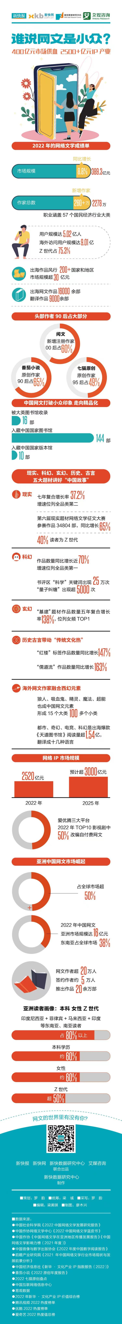 每三个中国人就有一个网文用户,还有9亿在海外 网络文学已经不是一个小群体的冷门爱好,而是万众瞩目的全球赛道:5亿中国读者在网络文学上花费近400亿元,16000余部出海网文作品也培育了逾9亿海外用户,主要网络文学平台去年营收规模超230亿,头部网文公司年营收76.26亿元,掌阅科技5.98亿元,中文在线2.88亿元……虽然面临免费阅读冲击、AIGC(人工智能生成内容)来袭和众多平台的激烈竞争,增长规模有所放缓,依然不失为一门好生意。 @作者 青少年到“银发族”纷纷入行 95后00后成原创主力军 一份关于中国网络文学发展研究的报告显示,在青年作者步入中年,新一代青年从业者崛起的同时,网络作家在年龄结构上愈加广泛多元,几乎覆盖从青少年到“银发一族”的全年龄段。70后80后的资深作家仍然活跃,以90后为代表的青年网络作家正在从新增主力逐渐变成创作中坚,00后则以数据优势取代90后成网文创作新增主力。以地域分布而言,四川、河南、山东、广东等省份位居新增作家数量前列。 在网络文学的供给侧方面,据中国作协数据显示,累计超过2000万人次在各类文学网站注册成为网络作家;累计超过200万人与网络文学网站签约,成为签约作者;持续写作的活跃作者约70万人;职业作者近20万人;省级以上网络作协会员1万多人;中国作协网络作家会员465人。全国省级网络作协会员平均年龄35岁。 数据还显示,95后00后已成原创主力军,阅文集团2022年新增注册作家中,00后占比达六成,年度作家指数TOP500的新面孔中,00后占比提升10%,作品数较去年同期翻三倍;番茄小说发布的《2022年原创年度报告》则显示,90后在当年入驻该平台的原创作家中占比高达65%;《2022七猫原创盘点》的数据也表明,该平台的原创作家中,49%为95后新生代作家。与此同时,“银发群体”也是网文作家中一个具有存在感的阵容,截至去年年底,阅文平台注册作家中,60后累计突破4万人。 网文写作已经成为热门的兼职副业选项。在网文作家的职业背景方面,涵盖了教育、卫生、互联网和相关服务等57个国民经济行业大类。他们结合自身知识体系与职业经历,跨界融合兼职创作,使专业化的行业背景小说风靡网络,塑造的职业形象既有医生、老师、警察、律师等常见职业,也有入殓师、竹编艺人、游戏制作人、敦煌壁画修复师等冷门职业。 @读者 免费与付费用户共同增长 国内用户总规模超五亿人 第49次《中国互联网发展状况统计报告》显示,截至 2021年12月底,我国网络文学用户总规模达到5.02亿人,占网民总数的48.6%,读者数量达到了史上最高水平。 在网络文学消费侧,一方面,免费与付费阅读呈现出共同繁荣的新局面。在各平台付费用户数量、付费收入金额持续跃升的同时,免费阅读量持续增加。 据易观数据统计,2022年免费网文平台日活用户数同比增长3.5%;同时,付费阅读重回高增长,起点读书2022年12月的付费月活用户数同比上涨80%;腾讯视频2022热度榜单TOP10中,60%的电视剧改编自付费网文;优酷2022热度榜单TOP10中,有50%的电视剧改编自付费网文;而爱奇艺的2022热度值总榜TOP10中,则有30%改编自付费网文。 ■策划:新快报记者 罗韵 ■统筹:新快报记者 梁彧 ■采写:新快报记者 罗韵 ■制图:廖木兴