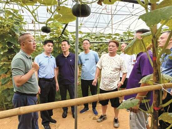 ■荔湾区供销合作社调研组一行查看贝贝南瓜生长情况。 |