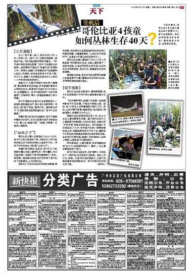 飞机失事后,哥伦比亚4名土著儿童在丛林中苦撑40天,终于全部获救。他们如何创造出生命奇迹?媒体经多方采访,试图拼出答案。 【正在康复】 这4个孩子是一家人,现年分别13岁、9岁、4岁