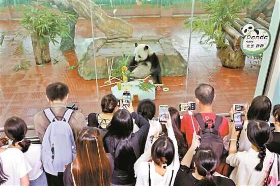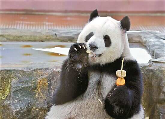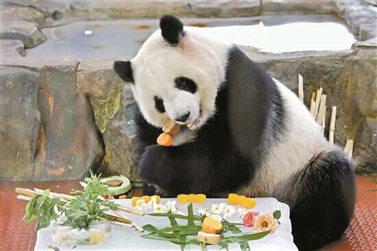 夏日炎炎,我们的国宝还好吗?6月14日,记者走进广州动物园,看到了正在空调房里喝冰饮的大熊猫们,好不乐哉! 假装“手滑”丢掉胡萝卜 当室外温度高于26℃时,广州动物园的熊猫就会被安排进了空调房。记者看到,保育员在冰块上放了新鲜的南瓜、胡萝卜、哈密瓜、苹果以及冻住的青瓜、南瓜、苹果汁,还摆出了漂亮的造型,有的果蔬更是用竹签串起来,方便大熊猫“撸串”。 这么多好吃的,哪个是它们的心头好?保育员陈婉慧告诉新快报记者,哥哥星一只爱苹果,妹妹雅一喜欢南瓜、玉米、窝窝头、苹果。“挑食”的兄妹俩都不怎么喜欢胡萝卜,榴莲和苦瓜更是嗅了嗅就直接被拍掉了。 真是这样吗?只见两只大熊猫趴在冰块上,快乐地嚼着冰镇果蔬,腻了就捞起布满水珠的新鲜竹杆和竹叶啃,不小心拿到讨厌的胡萝卜,它们会假装“手滑”果断丢掉! 这样会不会有点浪费?“我们会筛选应季的蔬果给大熊猫尝尝鲜,作为食物丰容的一种,这样能避免它们产生一些刻板行为。”陈婉慧说。 哥哥是“暖男”,妹妹会“夺笋” 大熊猫界的“女明星”花花经常被弟弟夺笋。其实,广州动物园的星一小时候也有过类似的经历。在星一和雅一还没分房住的童年时期,雅一会去抢星一的竹子,星一不仅不会生气,还主动递给妹妹,可以说是非常暖男了! 除了吃饭,两只国宝在睡觉方面的表现也显示出截然不同的性格。早上保育员上班时,星一已经自己起床了,而雅一虽然醒了,就是喜欢躺着不动“赖床”,非要“奶爸”“奶妈”三催四请才会从房间里跑出来“营业”。对待玩具,憨厚老实的星一比较温柔,雅一就很有公主脾气,会拍、扔,人送外号“费裂箩”,还被写出来贴在熊猫馆前了,不知道它知道后会不会觉得“社死”。 叫“靓仔”会回头?巧合而已 虽是工作日,但到动物园看熊猫的人真不少。记者听到有人在星一面前大呼“靓仔”。不过,这位“靓仔”毫无反应。 “其实大熊猫对游客是没感觉的,你干什么都无所谓。之前有人叫‘靓仔’发现它回头了,应该只是巧合,它只是刚好瞅到那里了。”陈婉慧说,经过长期的相处训练,星一和雅一只对她们的“呼叫”有感觉。“比如说,两只熊能听懂我们说的坐下,这样能便于为它们进行体检。” 记者发现,相比冬天,兄妹俩似乎更加白净了。“它俩不是很爱泡澡,偶尔有心情了才泡一泡。可能因为冬天它们在户外活动,比较容易沾上泥,空调房内相对更干净些。而且,它们大了,也不像小时候那样爱刨坑。”陈婉慧说。 动物园提醒说,两只国宝生活很规律,中午12时至下午2时是午休时间,接下来的一个多小时有一半的几率会继续睡。所以,你知道什么时间去看它们最合适了吧? 动物消暑,各有妙招 不只是大熊猫,动物园里每个好朋友都有被好好对待。记者了解到,园方根据每个动物的特点采取了不同的防暑降温措施,让园内“居民”也能清凉一夏。比如,金丝猴馆是冰块+喷雾,小熊猫为空调+冰块,华南虎和棕熊可以在私家泳池中泡凉水澡,河马一口一个大西瓜…… 记者看到,草食区的长颈鹿在喷淋降温装置下,享用着保育员为它们准备的解暑蔬菜、水果。据悉,喷淋装置在室外温度达到32摄氏度后就会启动,增加空气湿度以达到局部降低温度的效果。 猩猩馆内室空调保持在26℃左右,而户外运动场的喷淋装置为炎热夏日增添了丝丝凉意,西瓜、酸奶等消暑食物更是让黑猩猩的夏日美滋滋。往年,广州动物园的母猩猩还爱喝凉茶,今年它怀孕了,便暂且搁下。等到小宝宝出生后,也会吵着要饮凉茶吗? ■采写:新快报记者 王 彤 通讯员 王 益 ■图片:新快报记者 李小萌