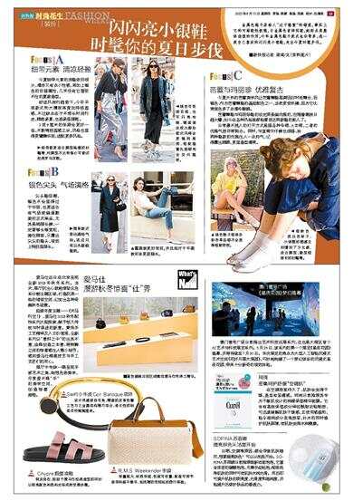 金属色鞋子易给人“过于隆重”的错觉,事实上它的可搭配性极强,与金属色首饰同理,起到点亮整体造型的作用,今年金属色鞋子款式也非常多,选一款自己喜欢的闪闪亮小银鞋,走出今夏时髦步伐。 ■新快报