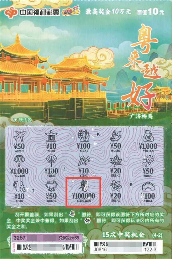 广东福彩“粤来越好”1200万派奖今日收官 新快报讯 记者陆妍思 通讯员袁苏华报道 广东福彩“粤来越好”即开票1200万派奖活动将于6月19日20时结束。该活动自5月12日开展以来深受广大购彩者欢迎,广东彩市“粤来越好”幸运头奖接连爆出,呈现一片欣欣向荣的景象。记者从佛山市福彩中心获悉,继5月5位幸运购彩者将“粤来越好”头奖收入囊中后,6月才过去短短几天,佛山又有3位幸运购彩者邂逅“粤来越好”头奖。 新晋粉丝迎好运 来场说走就走的旅行 6月1日,来自佛山市南海区狮山镇44130793投注站的幸运购彩者小方(化名)是福彩刮刮乐新晋粉丝,平日里和男朋友约会时,玩刮刮乐是必选的“节目”之一。在她看来,情侣一起刮彩,既能收获惊喜、分享喜悦,还能增进感情。 “我不仅收获了派奖的幸运,还收获头奖10万元,这是怎样的好运气!‘粤来越好’果然票如其名,希望我们的感情越来越好!”原来,小方和男朋友买了8张刮刮乐,其中1张中出奖金50元,符合派奖条件,派送奖金20元,还有1张则刮中头奖,收获奖金10万元,贡献个人偶然所得税2万元。“兑奖后,我打算和男朋友来一场说走就走的旅行,去欣赏浩瀚星空、余晖落日!” 保持平常心 奖金用来提升自我 6月2日,来自佛山南海区丹灶镇第44130312号投注站的幸运购彩者谭先生(化名)好运爆棚,以2张“粤来越好”邂逅头奖,收获奖金10万元,贡献个人偶然所得税2万元。 “玩刮刮乐能给我带来快乐,当了解到福利彩票的发行宗旨是‘扶老、助残、救孤、济困’时,我便更加坚持了,既能收获快乐,又能献爱心,中不中奖倒不那么重要了。”对于突如其来的幸运,谭先生表示保持平常心很关键,不会因为中奖而沉迷,奖金用来学习提升自我。 连环中奖 小奖金换来“大惊喜” 6月6日,来自佛山市顺德区勒流街道44131247投注站的幸运购彩者小吴(化名)用小奖金换来“粤来越好”头奖,收获奖金10万元,贡献个人偶然所得税2万元。 “上期买的双色球中了40元,感觉运气不错,我便换了4张热门票种‘粤来越好’,没想到运气特别好,第1张中了100元,第2张居然中了头奖10万元,感谢刮刮乐给我带来大惊喜!拿到奖金,我打算还部分房贷,减轻了一些压力,挺好的!”小吴说道。 美好寓意 助她们收获幸运奖金 其实,除了“粤来越好”成绩耀眼,其他票种同样给力。6月1日,来自佛山市南海区黄岐街道44139106投注站的幸运购彩者郭女士(化名)喜中“888”头奖,收获奖金30万元,贡献个人偶然所得税6万元。 “8是我的幸运数字,‘888’寓意‘发发发’,自然不能错过,刮出头奖30万元的那一刻非常激动,中大奖的感觉真的特别好!”郭女士说。 6月7日,来自佛山市顺德区大良街道44131185投注站的刮刮乐忠实粉丝杨女士(化名)幸运中出“国泰民安”头奖,奖金30万元,贡献个人偶然所得税6万元。 杨女士说道:“我特别喜欢刮刮乐‘国泰民安’,巍峨的华表、金黄的稻谷、大红的灯笼,呈现出国家太平、人民安乐的美好景象。平时中小奖就非常满足的我,竟然收获头奖30万,福彩刮刮乐,真是越刮越快乐!” ●温馨提示 广大购彩者须及时兑奖 “粤来越好”即开票1200万元派奖活动计划派奖至2023年6月19日20时,全省各地彩民须把握最后一天领取奖上奖的机会了。 本次活动规定,凡在广东省(不含深圳)内购买面值10元的“粤来越好”即开票游戏,且单张彩票中得1000元或50元奖级的中奖彩票,可参加派奖。具体派奖规则为:对单张兑取1000元的彩票中奖者,派送500元固定奖金;对单张兑取50元的彩票中奖者,派送20元固定奖金。 活动期间,符合派奖条件的中奖者(完成兑奖后)关注“广东福彩”微信公众号后,进入“服务中心”功能菜单选择“活动二维码”,并向福利彩票销售站点工作人员出示符合派奖营销活动条件的中奖彩票及“活动二维码”,由工作人员使用终端设备扫描中奖彩票的保安(兑奖)码和“活动二维码”进行登记。登记信息成功后,销售站点将兑奖奖金和派奖奖金交给中奖者。 广东福彩提醒,广大购彩者要及时兑奖。本次派奖营销活动时间以销售系统实际兑奖时间为准,符合条件的中奖者,须在规定时间内到销售站点兑取派奖奖金,若中奖者未在活动规定时间内兑奖,则视为中奖者放弃派奖奖金。