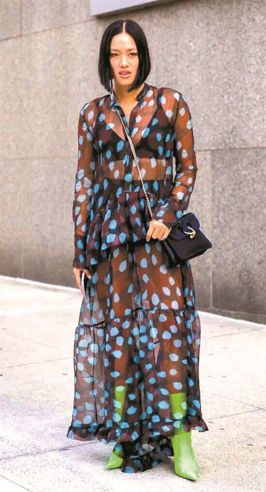 透视特性即便是再丰富的印花色彩或再复杂的剪裁都不觉厚重,V领、开衩款更能展现好身材。 |