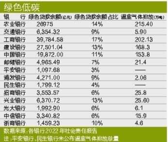 双碳目标提出后,金融业已有明确使命 随着全社会对于绿色经济发展的重视程度加深,各行各业都在各自领域践行自己的绿色低碳责任。金融业作为经济活动中的重要参与者,也在其每年的社会责任报告中将自己在践行绿色低碳方面的动作作为重点披露项目。 2021年,中国设立“碳达峰”“碳中和”目标并发布《中共中央、国务院关于完整准确全面贯彻新发展理念做好碳达峰碳中和工作的意见》,正式对金融业在绿色低碳领域的发展及工作提出具体要求。 文件指出,要有序推进绿色低碳金融产品和服务开发,引导银行等金融机构为绿色低碳项目提供长期限、低成本资金。鼓励开发性政策性金融机构按照市场化法治化原则为实现碳达峰、碳中和提供长期稳定融资支持。同时文件亦指出,要健全企业、金融机构等碳排放报告和信息披露制度。 新快报记者分别梳理6家国有银行、8家股份制银行、9家上市保险公司的社会责任报告发现,各大公司主要从对外绿色产业的金融支持力度和对内的低碳经营两方面诉述自身的社会责任。披露时多以具体案例为披露重点,同时聚焦一些可量化指标如绿色贷款余额、温室气体排放、绿色保额等。不过整体看,金融业在汇报绿色低碳方面的成绩时尚无统一的指标体系。 银行业 去年6大国有银行绿色贷款余额超12万亿 绿色贷款余额为银行业在披露其对绿色经济、绿色产业发展贡献的重要指标。2022年工商银行、建设银行、中国银行的绿色贷款余额均过万亿,其中工商银行的绿色贷款余额高达3.9万亿,为6大行中的最高值。整体来看,6大国有银行是绿色金融方面的贡献主力,2022年6大国有银行绿色贷款余额总计达到12.5万亿元。 8家股份制银行中,兴业银行的绿色贷款余额达到6370.72亿元,且占其总贷款余额的13%,为股份制银行中的最高值。另外一家绿色贷款余额占比超10%的为浙商银行,此外,浦发银行、中信银行、招商银行的绿色贷款余额均超3000亿元。2022年全年,8家股份制银行的绿色贷款余额总计为2.4万亿元。 践行低碳运营亦成为各银行经营的主旋律,从披露的年度社会责任报告中可以看到,各大银行积极践行“节约型”银行,将“降低温室气体排放”“降低纸张浪费”“降低燃油使用”等方面数据作为证明自身在低碳运营方面成果。不过,目前在低碳运营方面,各家银行未形成统一标准,具体披露指标并不统一。 新快报选取各大银行披露较多的“温室气体排放”这一指标,梳理发现,除农业银行、工商银行外,其余国有银行均将其温室气体排放控制在200万吨以下。交通银行、浦发银行、光大银行、浙商银行的温室气体排放量均低于10万吨,尤其是经营规模较大的交通银行仅有5.9万吨。 交通银行在社会责任报告中表示,2022年,交行在全行范围内开展碳盘查,了解交行自身运营碳排放现状;制定交行自身运营碳减排目标,明晰重点举措,研究自身运营碳达峰、碳中和实施计划。除降低温室气体排放外,交通银行2022年清洁能源贷款余额高达1390.34亿元,同比增长58.69%。 保险业 去年上市险企温室气体排放皆低于100万吨 作为绿色金融的重要组成部分,2022年11月,原银保监会发布《绿色保险业务统计制度的通知》,首次明确绿色保险是指保险业在环境资源保护与社会治理、绿色产业运行和绿色生活消费等方面提供风险保障和资金支持等经济行为的统称。 为促进绿色保险产品和服务的创新等,2022年多家公司订立相关规划。比如,太保产险制定《2022-2024年绿色保险(可持续保险)战略规划及实施方案》;阳光保险发布首个绿色发展专项规划《阳光保险集团绿色金融工作指导意见》;太平财险印发《关于设立绿色保险创新实验室的通知》。 绿色保险保额为保险业在披露其对绿色经济、绿色产业发展贡献的重要指标。不过,目前保险业各家披露情況参差不齐。就2022年可持续发展报告而言,各家险企的绿色保险业务发展情况差距较大,且披露情况不一。比如,中国人寿、中国太保、阳光保险仅披露了绿色保险的保额,分别为4178.12亿元、超过8万亿元和68万亿元;中国平安披露了绿色保险的原保险保费收入和保险金额,分别为251.05亿元和176.93万亿元;新华保险、中国太平仅公布了绿色保险的相关保费数据;众安在线未披露业务的具体数值。随着绿色保险业务统计工作的推进,各家公司在有关方面的披露亟待细化。 与银行业一样,保险业在反映自身低碳运营成绩上也未形成统一标准。记者选取披露最多的温室气体排放为代理指标,发现2022年所有上市险企皆将排放量控制在100万吨以下,中国太保、中国人保、新华保险、阳光保险、众安在线、中国太平的温室气体排放水平皆在10万吨以下,其中众安在线不足1万吨,这可能和众安在线的经营规模和经营方式相关。 众安在线在社会责任报告中表示,众安在2021年度针对温室气体总排放量订立了“未来3年保持温室气体密度为0.1公吨二氧化碳当量/员工”的目标。报告期内,我们落实了多项节能减排工作,已达成温室气体排放目标。同时,我们继续鼓励员工绿色出行,减少日常通勤及差旅碳排放,并依托夜跑俱乐部、超级展厅等开展绿色步行活动,提升员工、客户以及合作伙伴的节能减碳意识。 ■新快报记者 刘艳爽