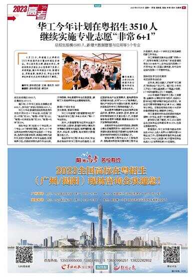 华工今年计划在粤招生3510人 继续实施专业志愿“非常6+1”