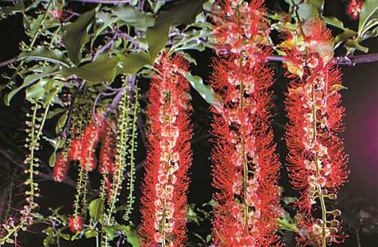6月中旬,新快报报道了广州红花玉蕊的开放盛况。这种花期只有一晚的“奇花”瞬间引来大批拥趸。另外,也有市民留言,称花期并非一晚。对此,记者专门请教了专家。 玉蕊花期真的只有一晚? “我是看了新闻过来的,觉得花很漂亮。”在珠江公园,拿着相机的何阿姨告诉新快报记者,玉蕊花天生就很会“抓”镜头,美得她都“舍不得走了”。 被称为“月下仙子”和“琼花”的玉蕊属常绿小乔木,花白色或粉红色、粉紫色,有着长而悬垂的穗状花序,一般花蕾从上往下依次绽放,近嗅有清香。傍晚花苞满满,半夜灿若烟花,清晨太阳升起花儿凋谢。掉落时的玉蕊花如同天女散花,美得短暂却不匆忙。 不过,有读者向新快报留言称,玉蕊花期并不是一晚。 为此,记者专门向广州市林业和园林科学研究院植物研究所所长王伟请教。王伟告诉记者,玉蕊有自己的生物钟,一朵花的花期确实只有一晚,一般傍晚开始开花,到晚上八九点完全盛开,第二天天亮时分就凋零,纷纷落下。“一串红花玉蕊上有很多花苞,今天这几朵花开,明天那几朵花开,持续下来整株树的花期约有半个月,这可能是市民疑惑的原因。” 据王伟介绍,一串花序的花苞往往有上百朵,一株大的花树会有成千上万朵花。清晨路过一棵红花玉蕊,能看到地面好似铺满了一层红霞,颇为壮观。 花期短暂如何繁衍? 花开为繁衍,短短一晚,玉蕊花能完成任务吗?王伟表示,红花玉蕊的花香浓郁,有利于其吸引夜间活动的昆虫来传粉。微风袭来,站在花树下,记者闻到阵阵幽香。“这时候,蝴蝶已经歇息,主要是蛾类为它授粉。”王伟说。在广州公园里,常常可以见到红花玉蕊树上挂着果实,可见本地的小动物已经帮它完成了KPI。 红花玉蕊喜欢高温湿润气候,原生地为东南亚海滨地带,广东、福建、海南等地引种作为园林观赏树种。红花玉蕊一般采用种子繁殖,生长较快,最高可达十米。广州的夏季非常适合它们生长,因此每年6月都能见到红花玉蕊大量开花。 为什么要选在 晚上开花? 王伟告诉记者,在夜间开花的植物较为稀少。我国最著名的当属昙花,蓄势多季,昙花一现。此外,还有南美的叉叶木,主要传粉者是蝙蝠。红花玉蕊选择晚上绽放的原因很可能是为了躲避太阳的炙烤。“白天太阳太烈的话,花朵可能开一两个小时就容易谢掉。另外,它的花粉在絮絮尖端,很容易晒伤或者死亡。” 红花玉蕊今年花期只余几天 红花玉蕊耐盐碱,能很好地固碳,还有极高的观赏价值。珠江公园绿化部部长谭穗生表示,红花玉蕊生命力十分旺盛,“除了每天正常的‘饮水’外,冬天需修剪一下枝条,再施点肥,就没有什么特别的方法了。” 据观察,下雨天不影响红花玉蕊开花,如果天空较阴暗的话,红花玉蕊会在下午提前开放。专家告诉记者,红花玉蕊今年开放的时间只有几天了,想要一睹其风采的市民要抓紧时间,“有花堪折直须折”。除了人民公园、珠江公园外,华南国家植物园、莲花山等地也可见红花玉蕊。 知多D 7月,这些夏花即将盛开 花城四季草木常青、繁花不败。去年初,广州市林业和园林局在官网发布了《花城四季赏花全域地图》(下称“赏花地图”),按照春夏秋冬四季变化为市民游客提供了赏花导览,带领观众品“四时之花不同,而乐亦无穷也”的趣味。根据赏花地图,在即将到来的7月,鸡蛋花、野牡丹、朱槿、睡莲、紫薇、荔枝、龙眼、栀子、茉莉等将会盛开。 部分夏花观赏点推荐 鸡蛋花 麓湖公园、荔湾儿童公园、广州市儿童公园、聚龙村、晓港公园、花城广场、文化公园、东山湖公园 野牡丹 云溪生态公园、广州动物园、越秀公园、文化公园 朱槿 云溪生态公园、华南植物园、广州市儿童公园 紫薇 珠江公园、广州雕塑公园、天河公园、二沙岛、流花湖公园、广州市儿童公园、白云湖公园、晓港公园、花城广场、东山湖公园 ■采写:新快报记者 王彤 通讯员 林园轩 ■图片:新快报记者 李小萌