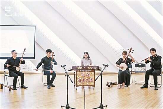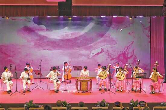 番禺区傍江东小学广东音乐团进行民乐合奏。 |