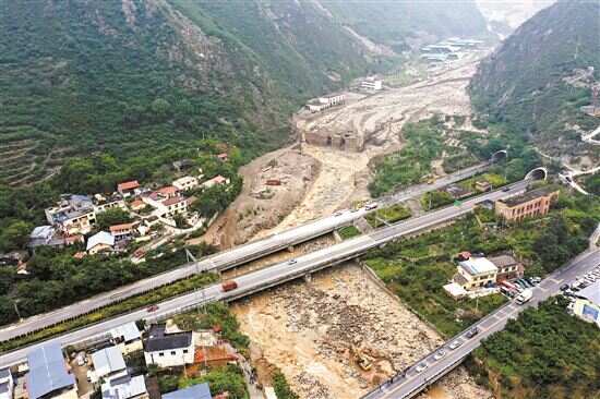 ■四川省汶川县绵虒镇板子沟泥石流灾害现场。 新华社发 |