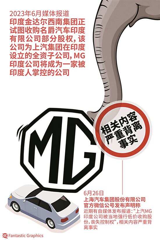 新快报讯 记者张磊报道 近日,上汽集团在官方公众号发布公告,澄清关于近期涉上汽MG印度公司不实报道。 上汽集团指出,自媒体发布报道称“上汽MG印度公司被当地强行低价收购股份,丧失控制权”的内容严重背离事实,“在国家政策指引下,上汽集团从2007年开始批量出口自主品牌汽车,集团以MG品牌为代表的自主品牌产品已进入全球90多个国家和地区,中国技术、产品和服务赢得了当地消费者青睐。今年上汽海外市场总销量预计将超过120万辆,并实现规模性盈利。” 上汽集团在声明中还表示:“上汽国际经营严格遵守我国以及海外业务所在国家的政策法规,充分尊重市场规律,充分掌握自主权。上汽集团控股MG印度公司。涉及MG公司股权交易需获得我国政府批准,我们会适时公布官方信息。” 此外,有业内知情人士表示,为进一步实现MG印度公司在当地市场的发展,上汽集团正谋求以增资扩股方式与印度当地企业进行合作,但上汽不会失去对MG印度公司的控制权。 公开资料显示,上汽集团在2017年宣布正式进军印度市场,并独立建设生产基地。上汽集团称,印度生产基地于2019年正式投产,产品包括新能源汽车和互联网汽车,印度投放产品将统一使用“MG名爵”品牌。